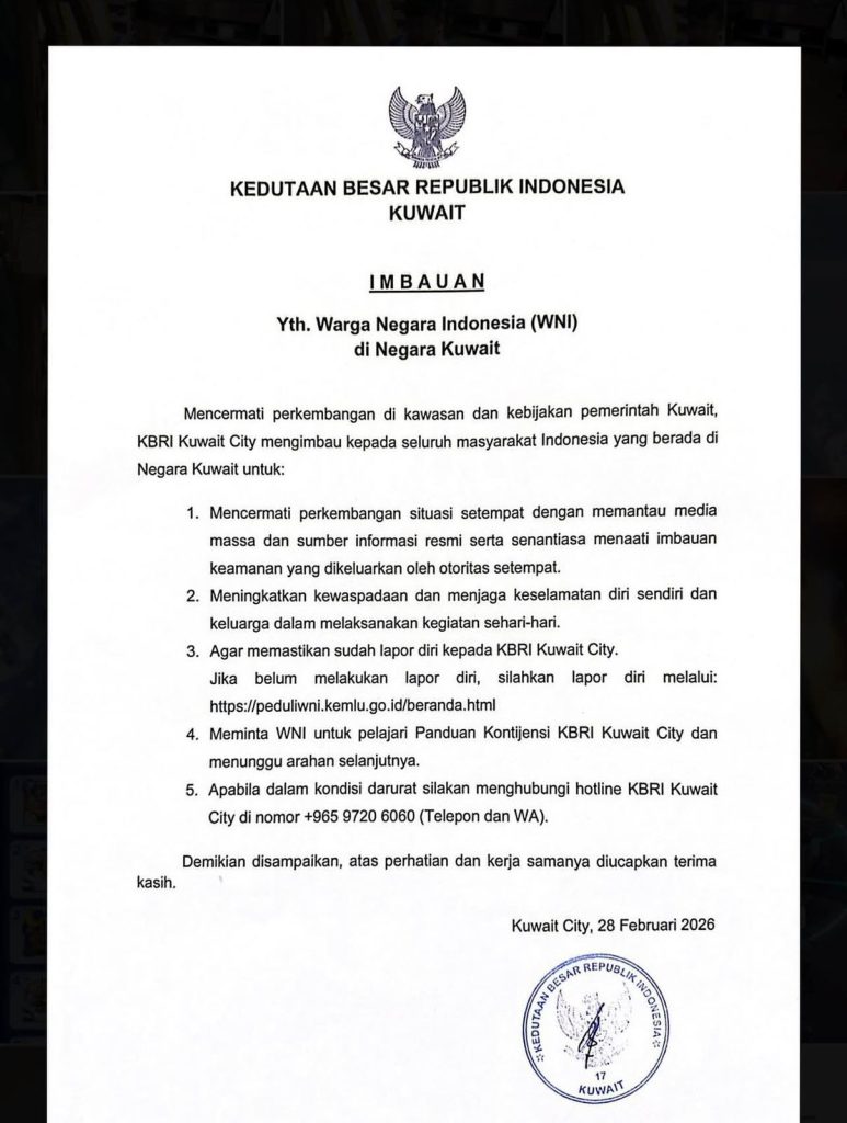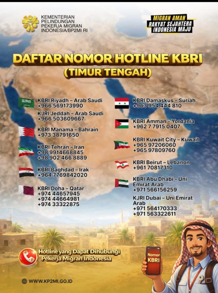 Imbauan danDaftar Nomor Hotline KBRI (Timur Tengah) terkait keberangkatan